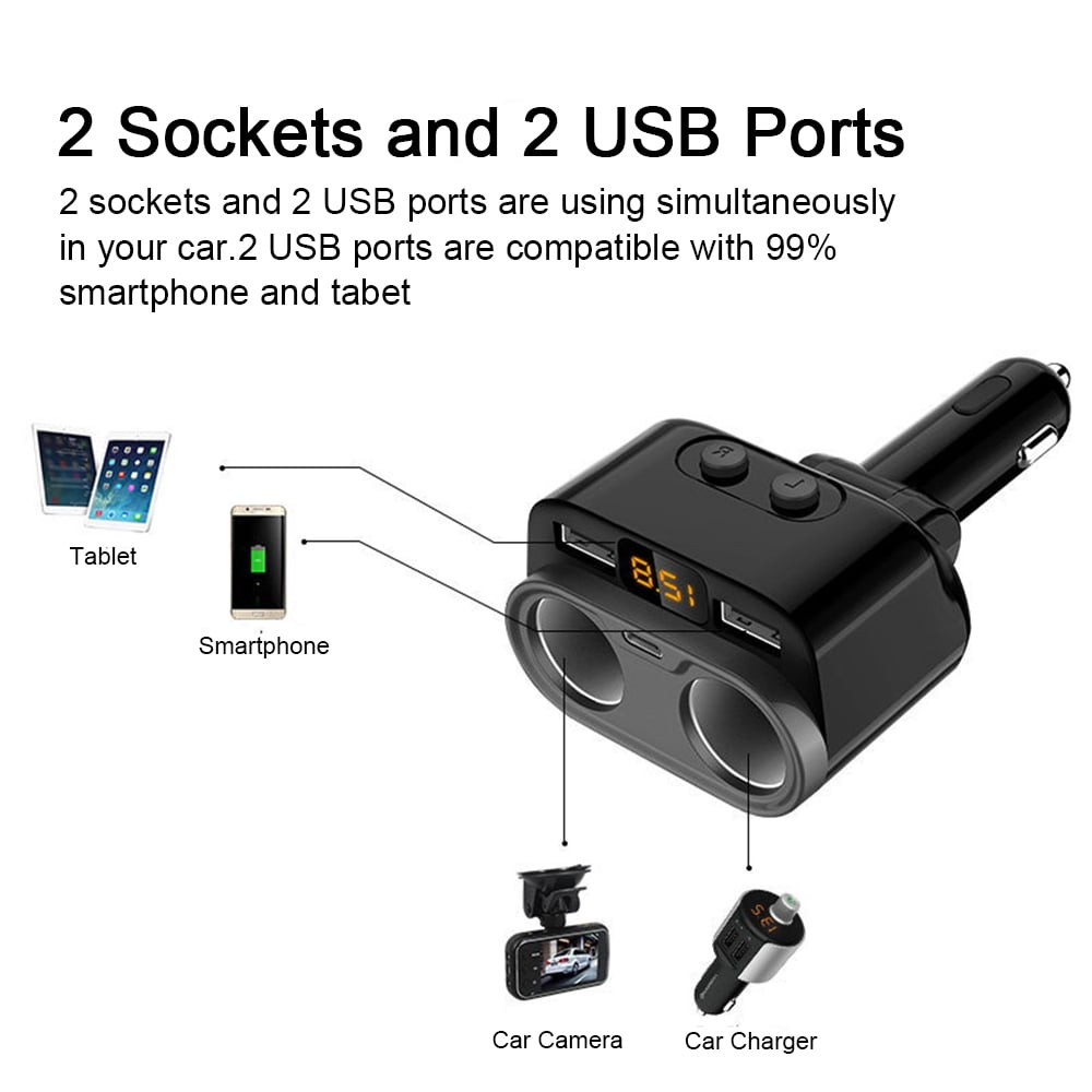 Reactionnx 2 Socket Cigarette Lighter Adapter Dc 12v 24v Socket Splitter 2 Port Car Usb Charger With On Off Switch And Voltage Display For Iphone X 8 7 Plus Samsung Galaxy S8 S9 And More Walmart Com